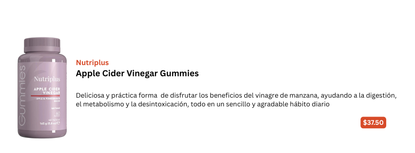 A través de suplementos que contienen vinagre de manzana, como cápsulas o gomitas, que resultan una opción práctica y agradable para quienes buscan los beneficios sin consumirlo en forma líquida.